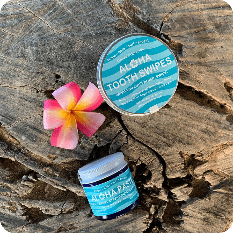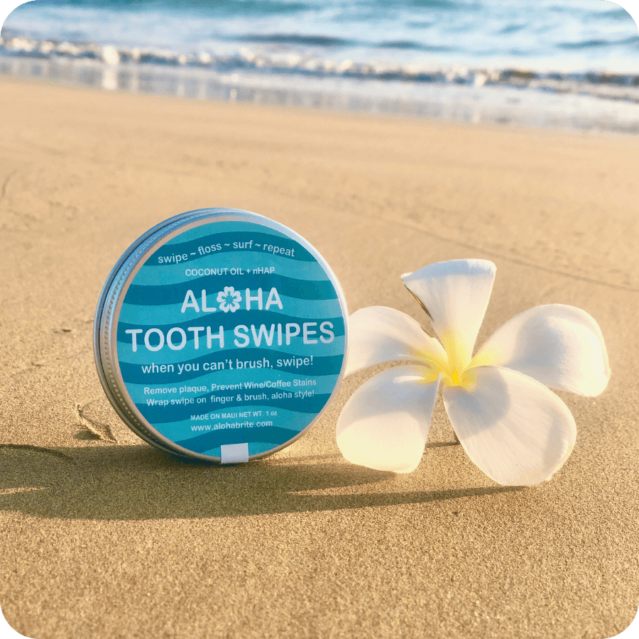 AlohaBrite® products are hand crafted with as few ingredients as possible and no badditives. Every ingredient in our formulation is carefully chosen because of its therapeutic value. The infusion of soothing coconut oil and therapeutic, vegan nanohydroxyapatite (nHAp) in each Swipe and Paste is like a daily vitamin for your teeth and gums.